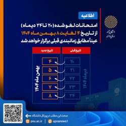 برگزاری امتحانات دانشگاه پیام نور از ۲۸ دی ماه،طبق برنامه قبلی